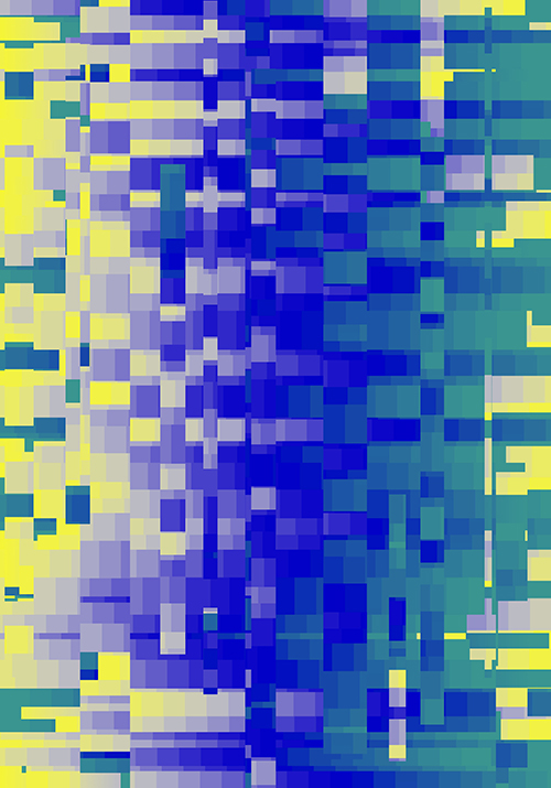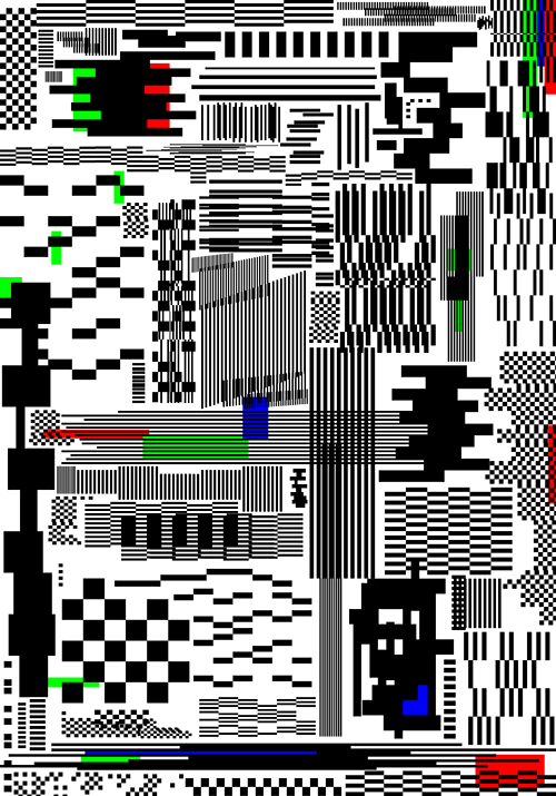 The Dance of Pixels. "Pixls." is a study in the rhythmic use of pixel images as well as their unmasking. A composition is created with elements of the aesthetics of pixel graphics (center). In a process of decoding, the rhythmic inner life of the images is revealed (left). In another writing the pixels are finally made to dance (right).